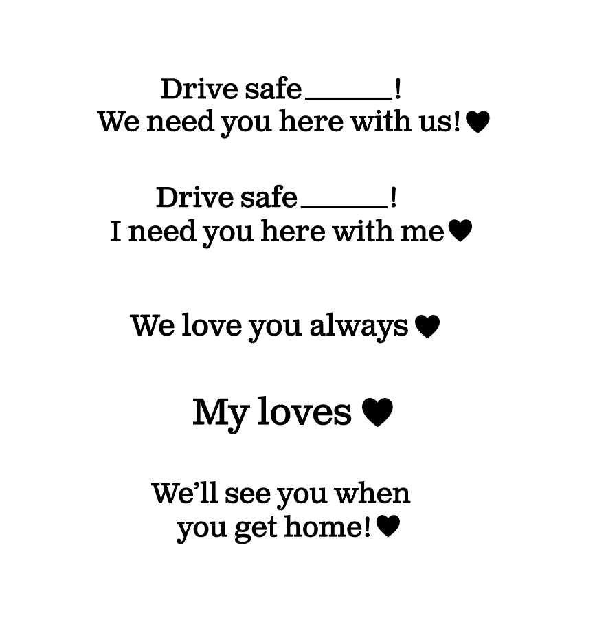 Please fill in the custom text field with the word you would like if selecting the "Drive Safe" design option.